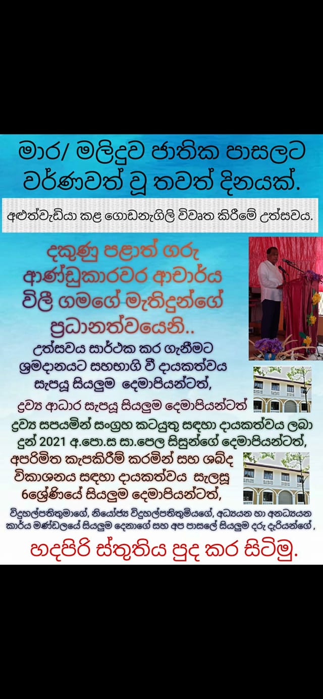 මාර/මලිදුව මහා විද්යාලයේ අලුත්වැඩියා කරන ලද ගොඩනැගිලි විවෘත කිරීමේ උත්සවය සඳහා ප්රධාන